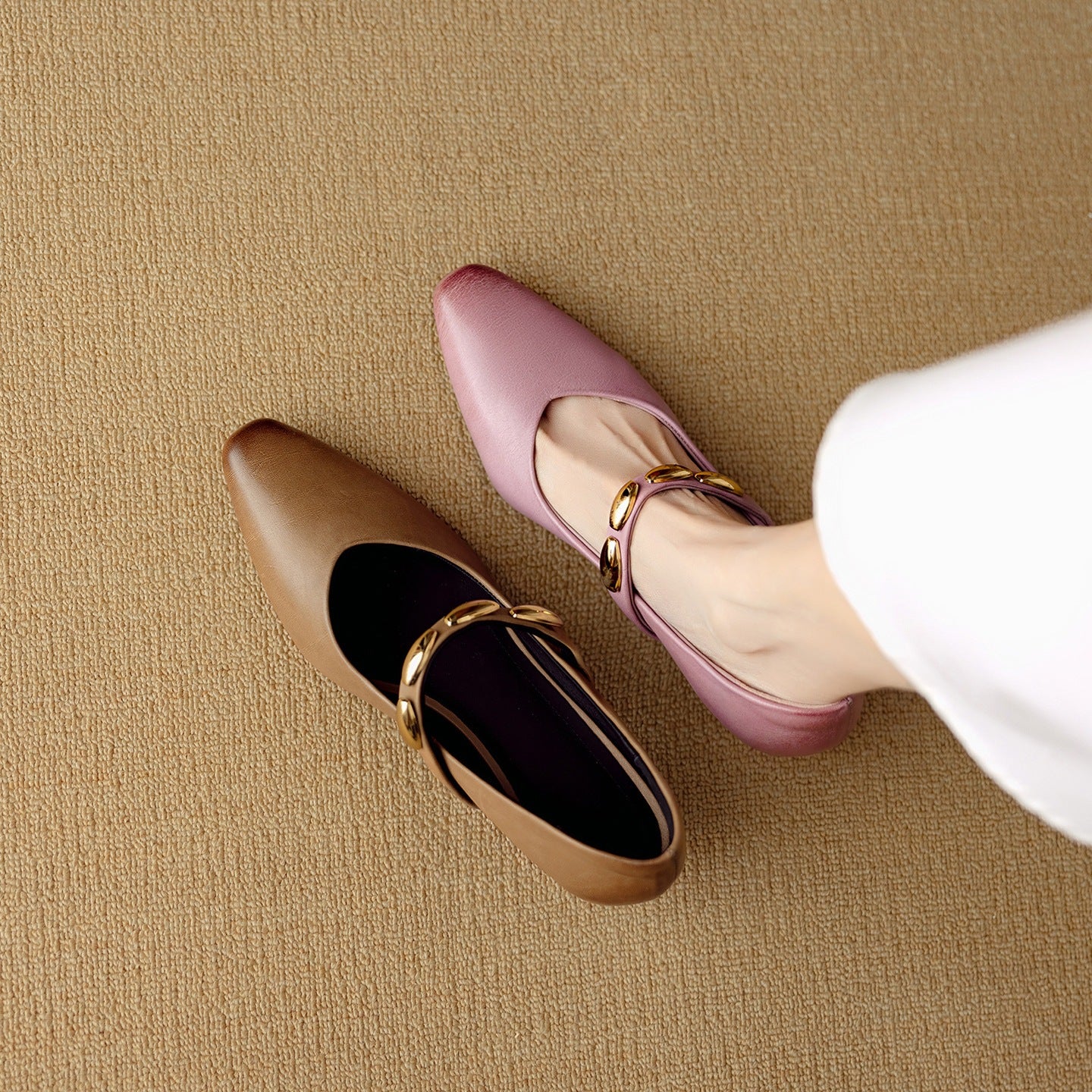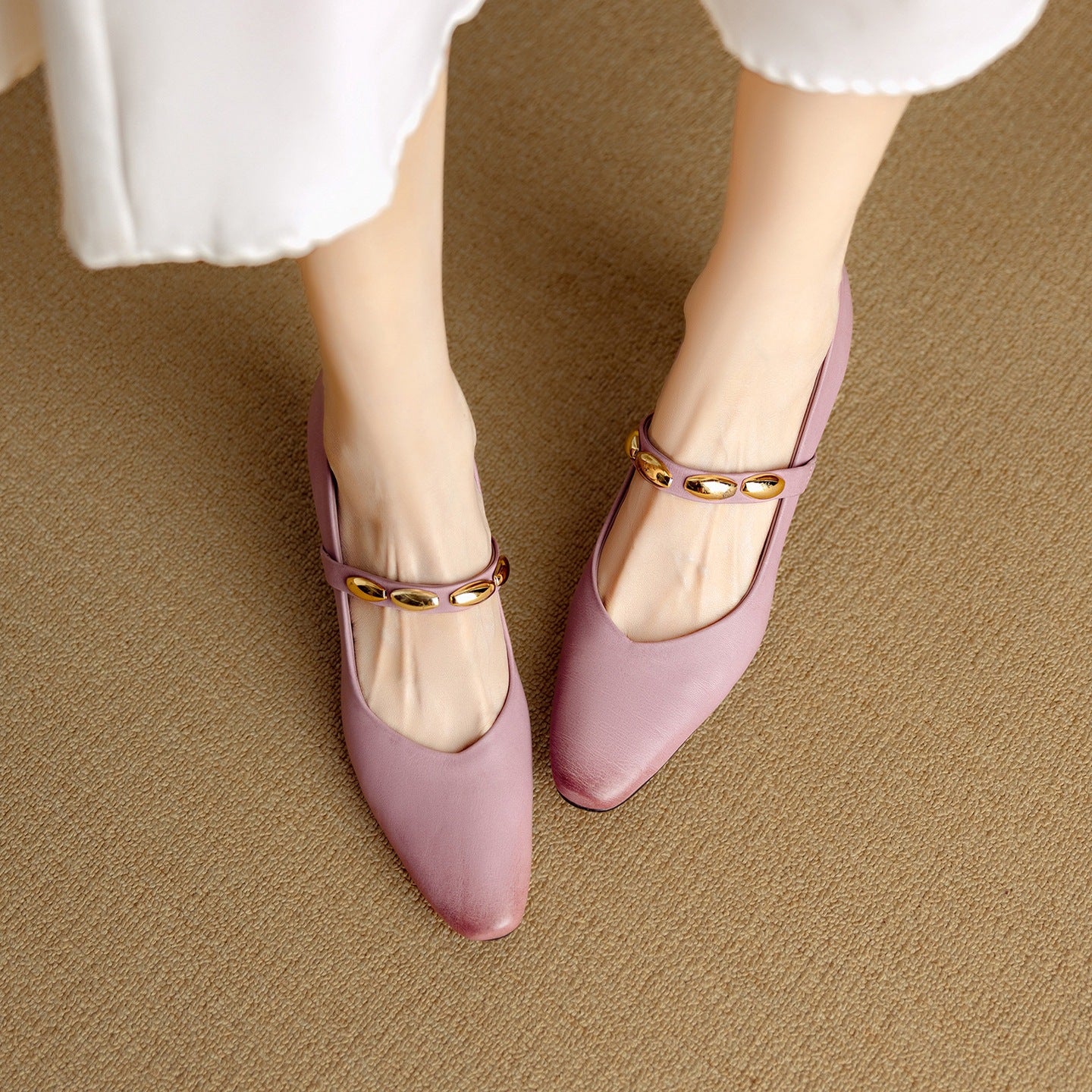 Socofy Autumn Leather Square Toe Retro Chunky Heel Shoes