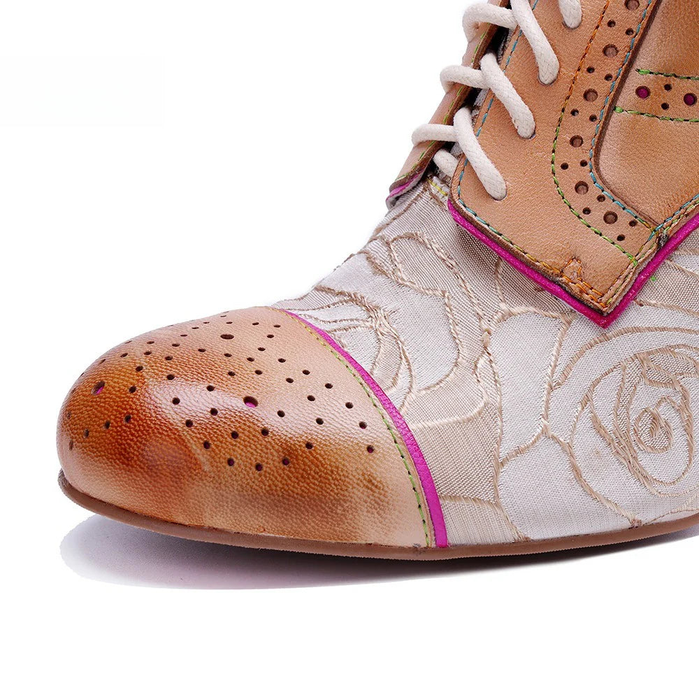 Socofy Genuine leather vintage splicing rose fashion lace-up high heels shoes