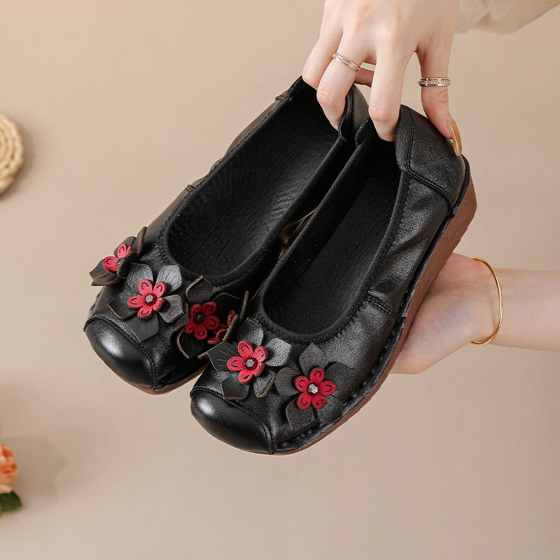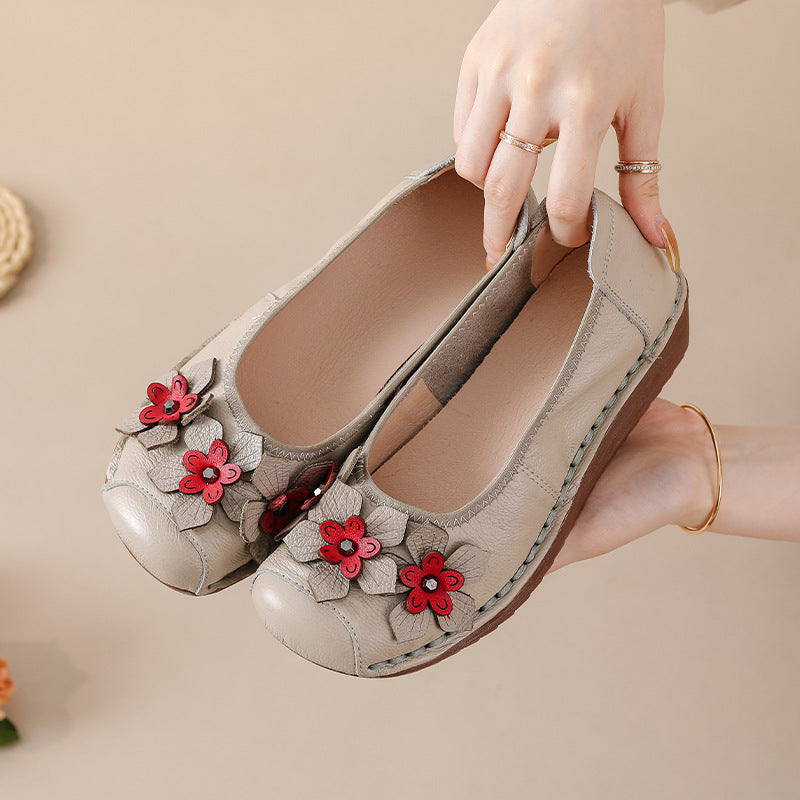 Socofy Genuine Leather Low Cut Platform Shoes