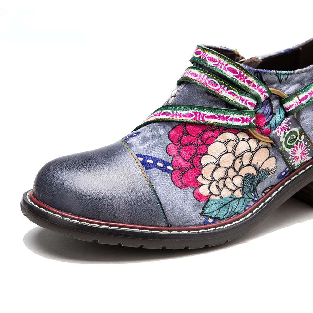 Socofy Leather Patchwork Vintage Graffiti Oxfords Brogues 1000