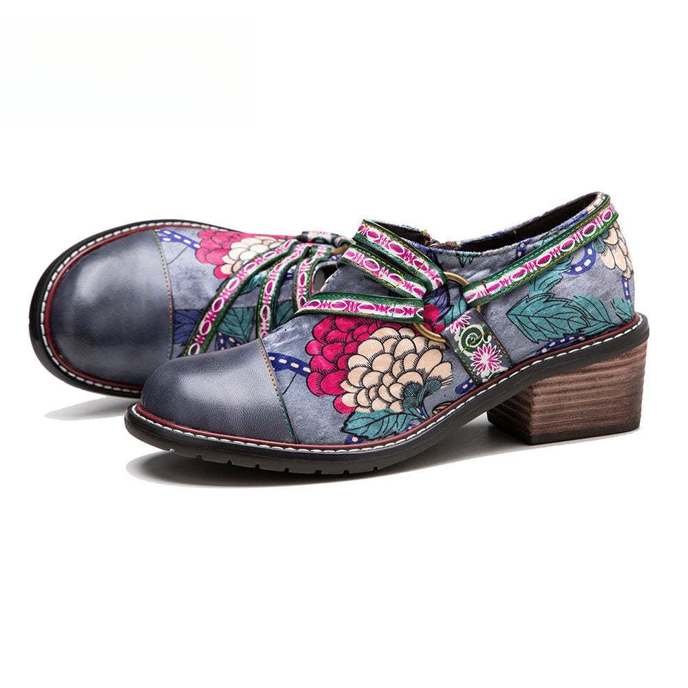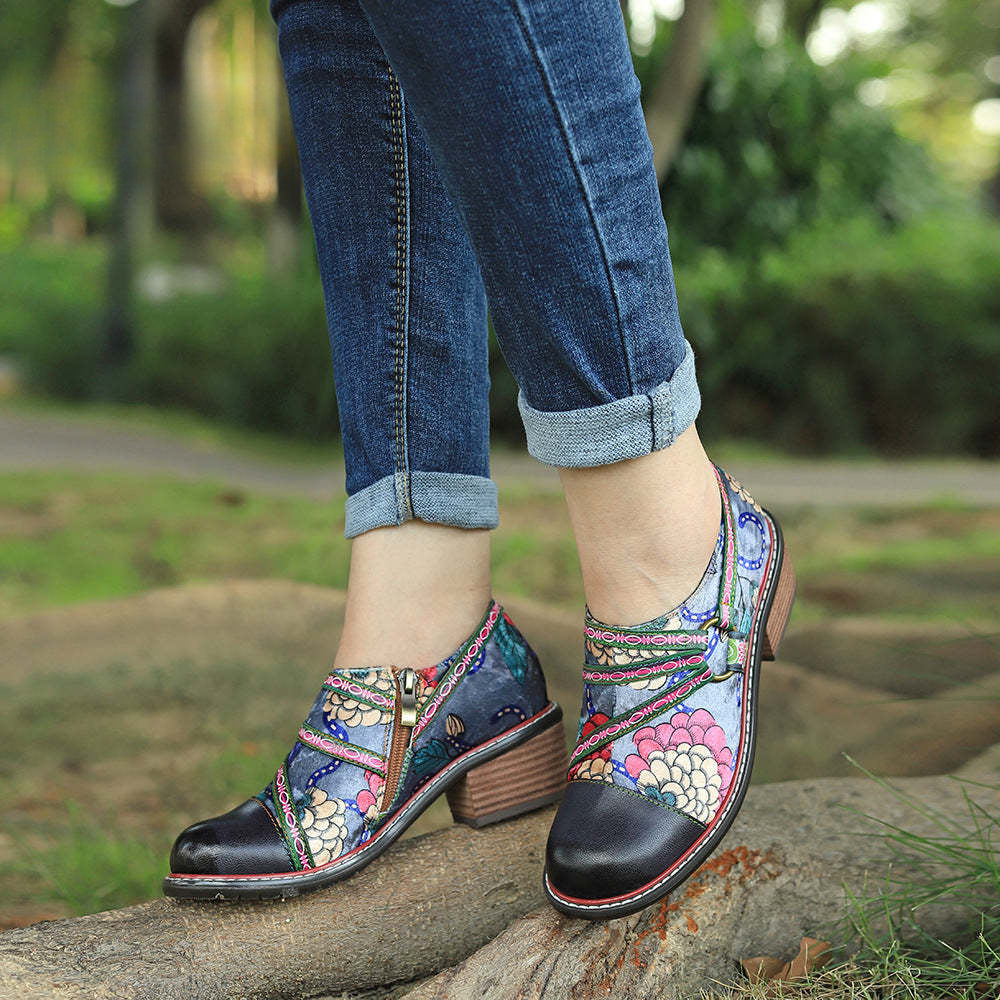 Socofy Leather Patchwork Vintage Graffiti Oxfords Brogues