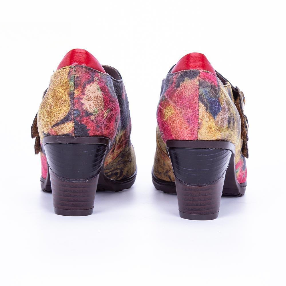 Socofy ethnic style retro genuine leather high heels women's shoes