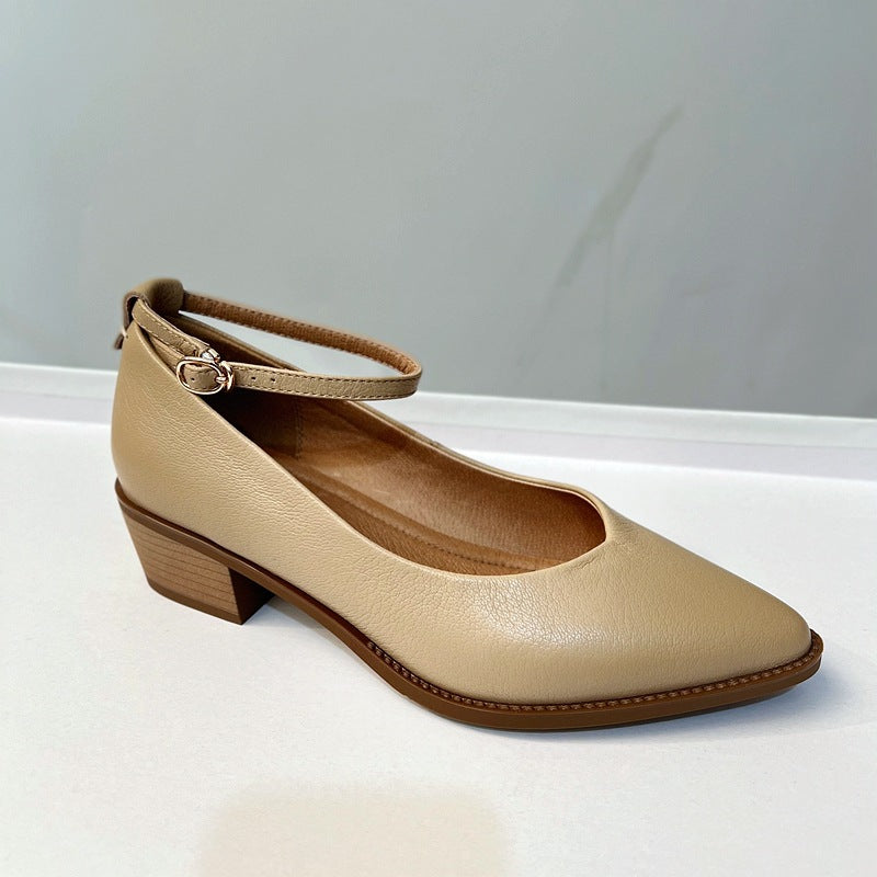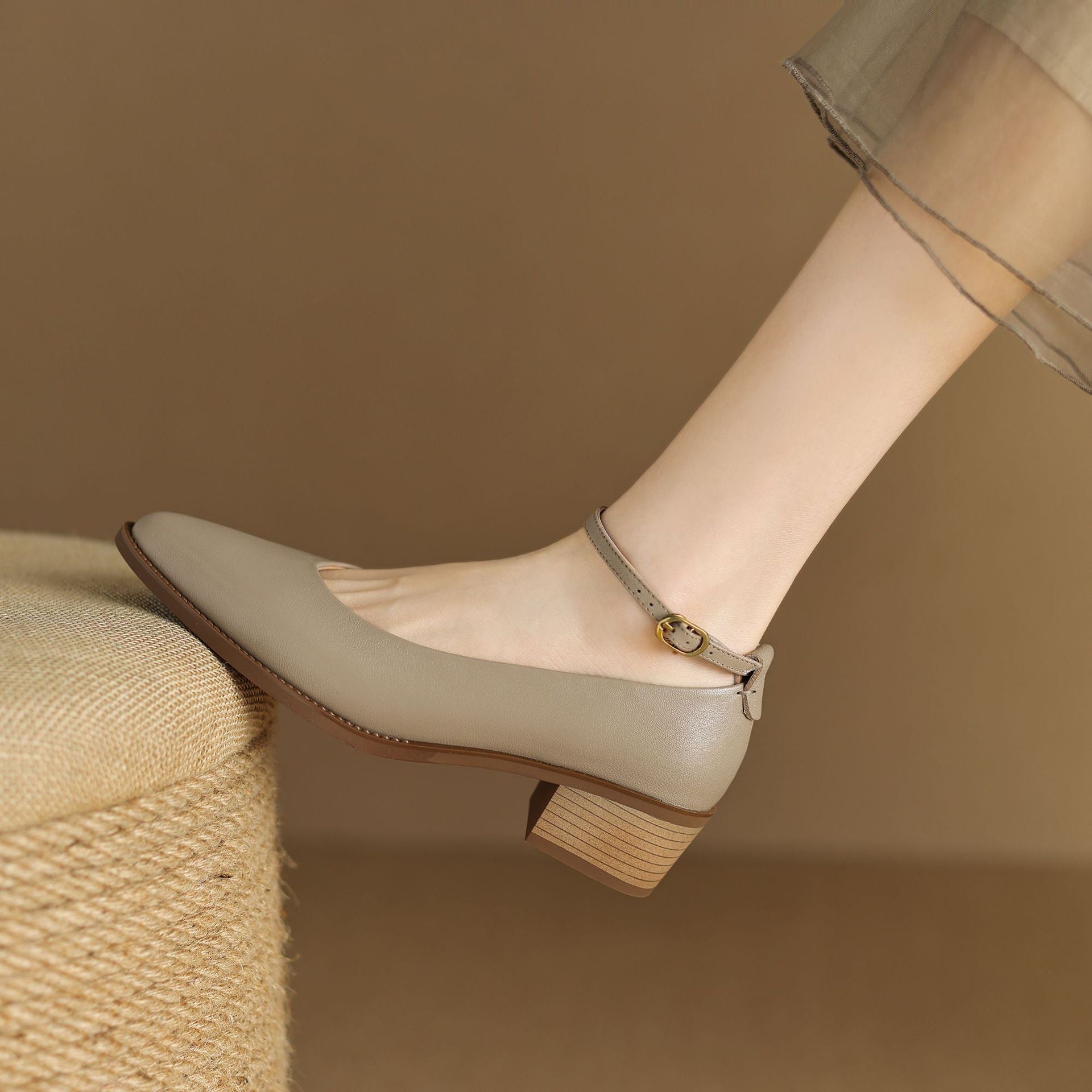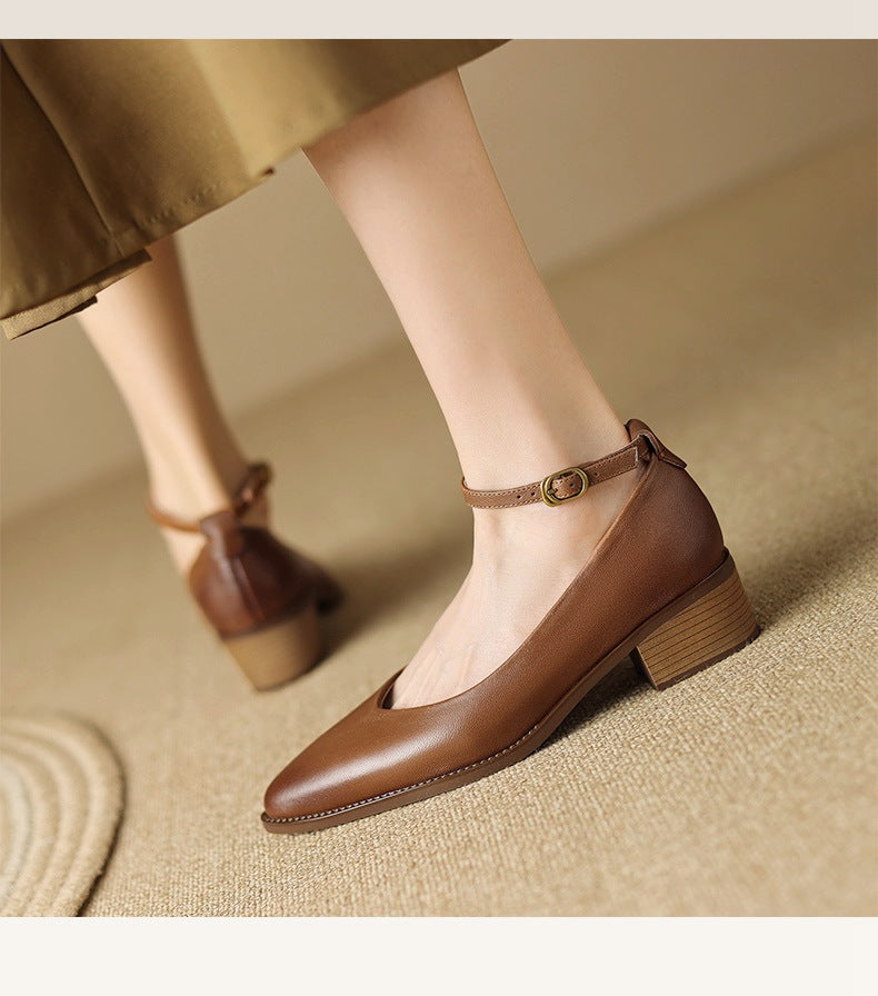 Socofy Spring Vintage Sheepskin Pointed Toe Mid Heel Shoes