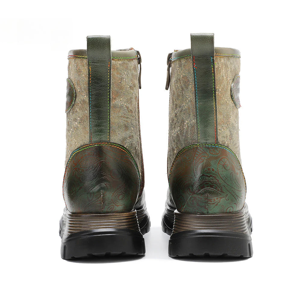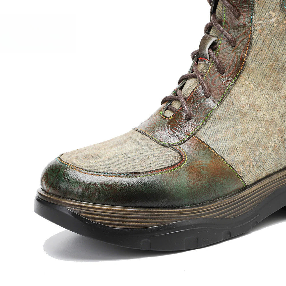Socofy Vicconfy Genuine Leather Vintage Lace-Up Comfort Boots 1000