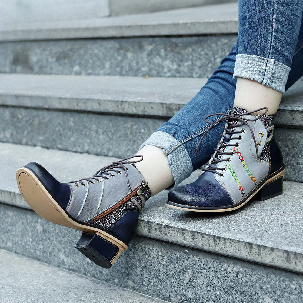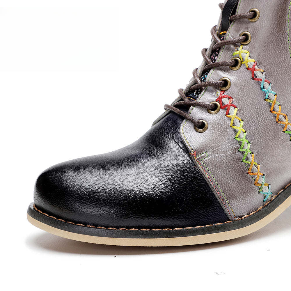 Socofy Vicconfy Handmade Leather Scuffed Vintage Women's Boots