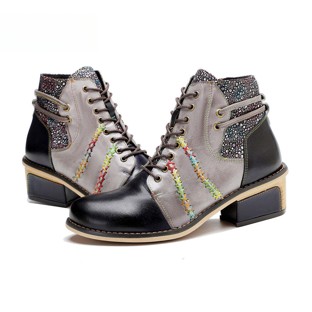 Socofy Vicconfy Handmade Leather Scuffed Vintage Women's Boots 1000