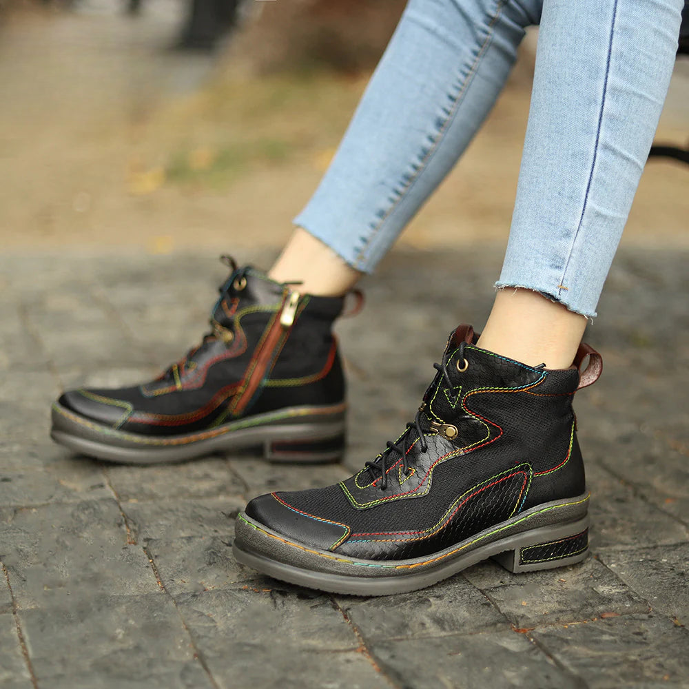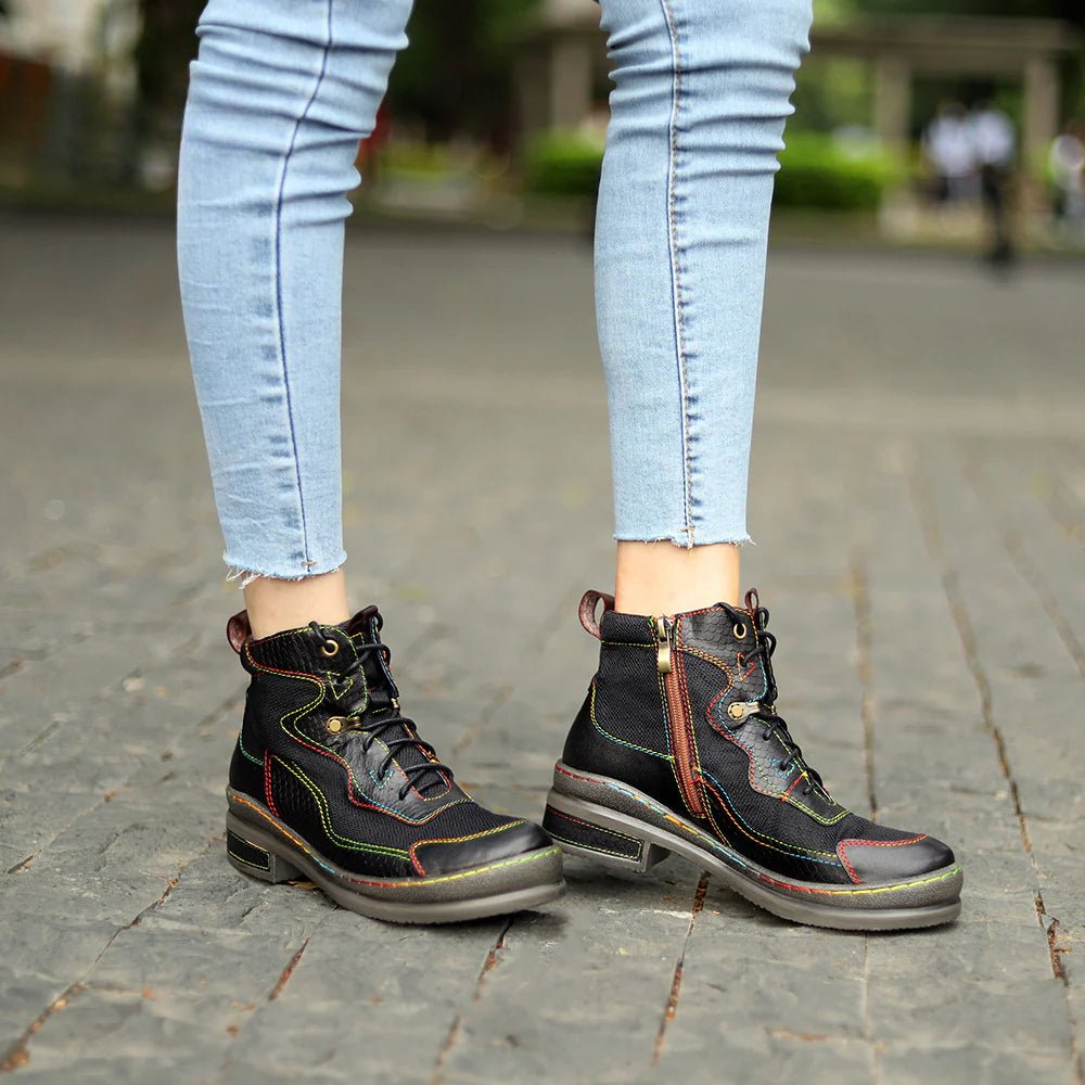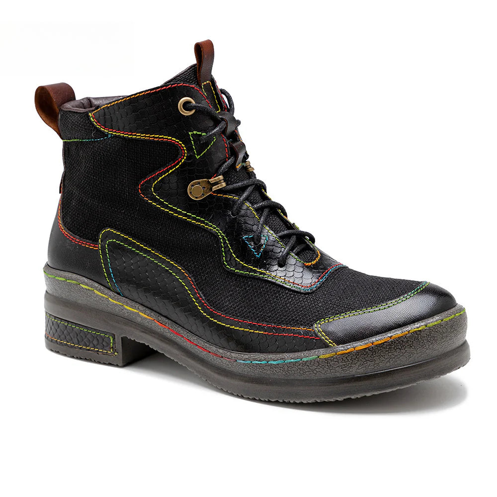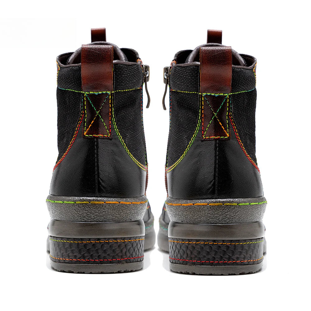 Socofy Vicconfy Leather Double Colored Thread Stitching Ankle Boots
