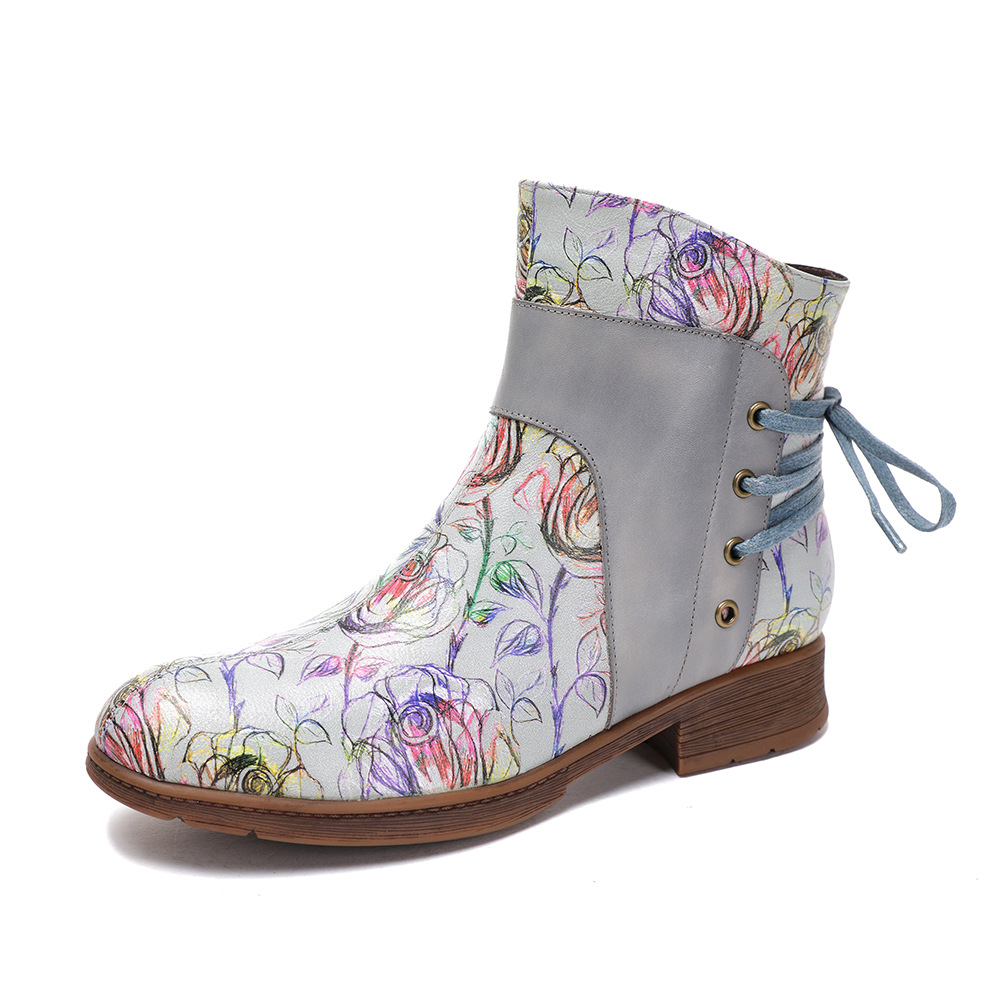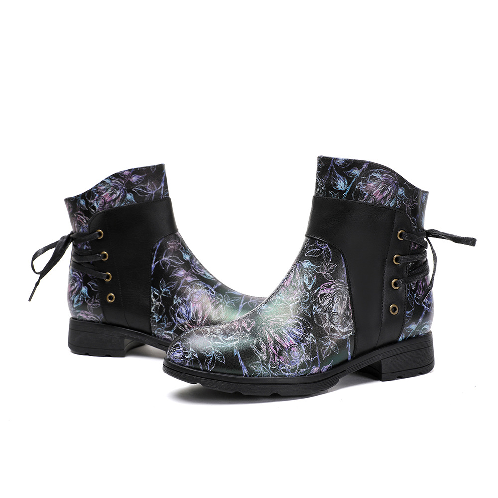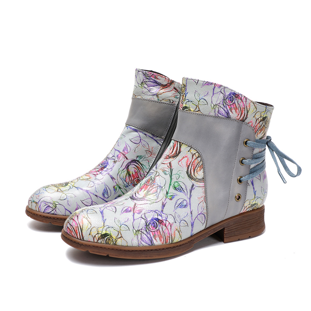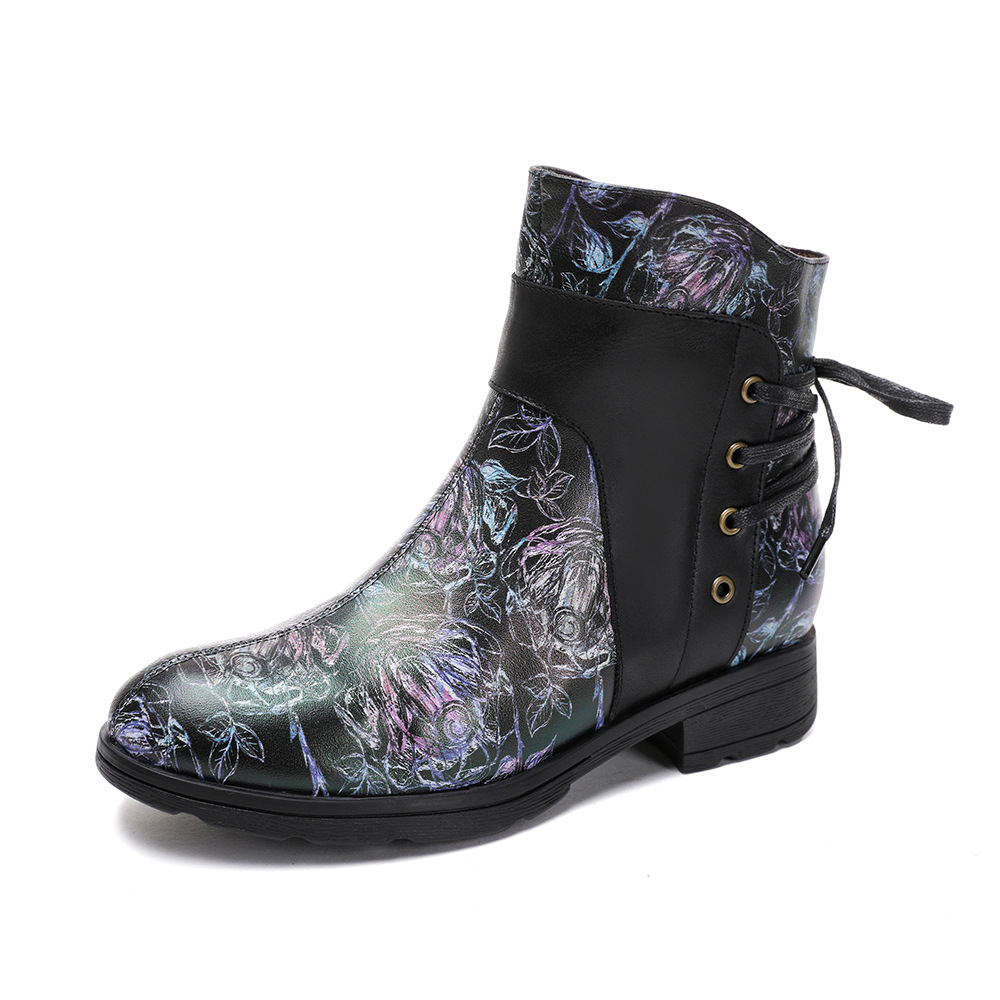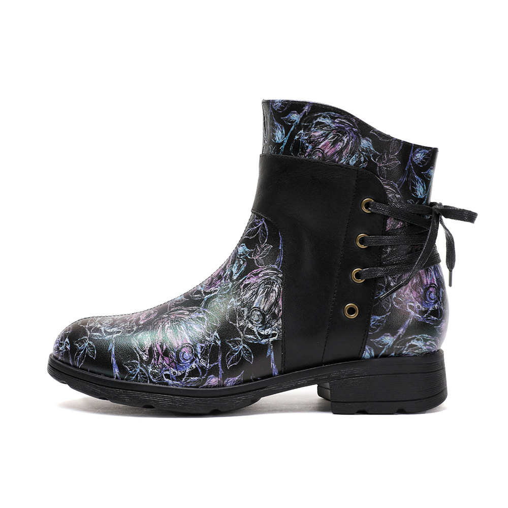 Socofy Vicconfy Retro Leather Blossom Casual Comfort Ankle Boots