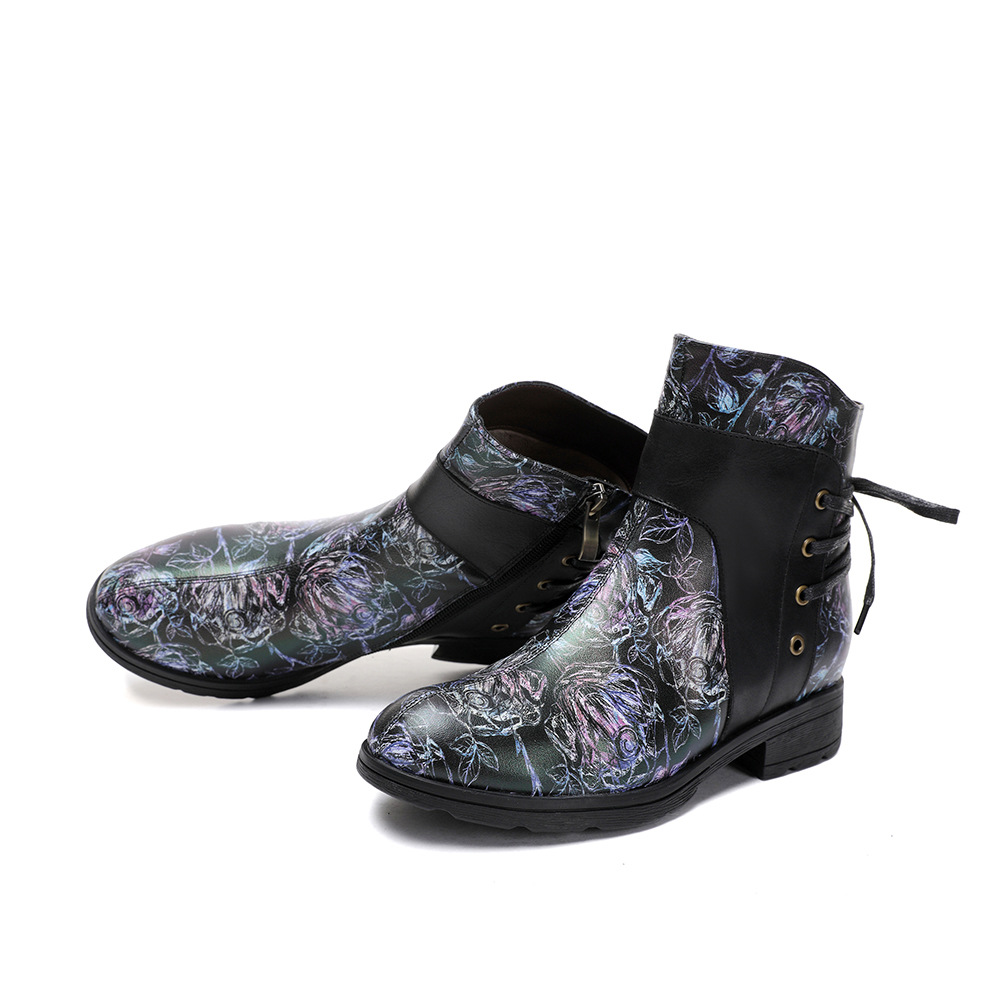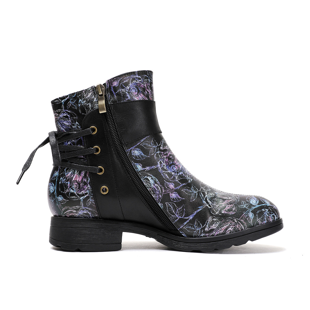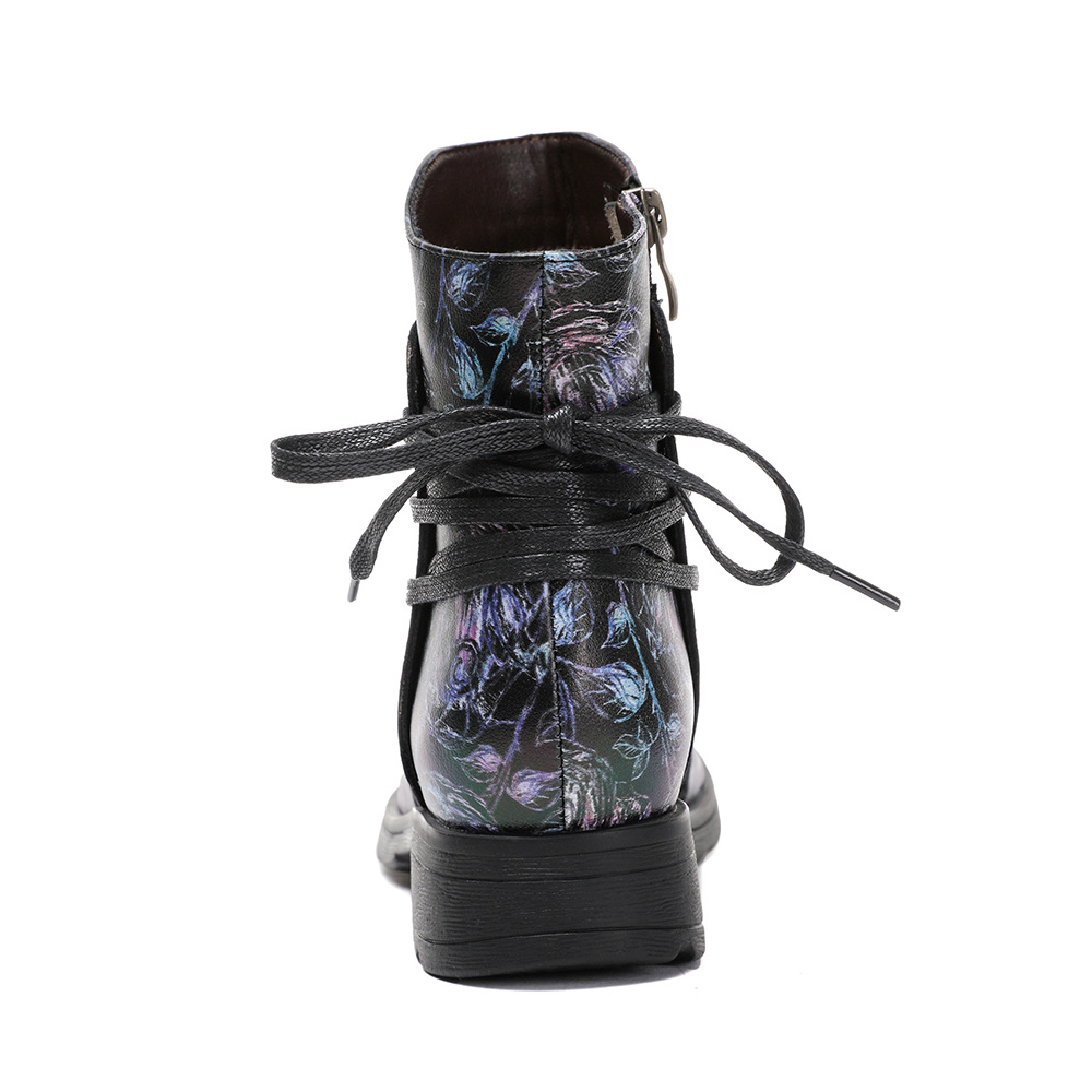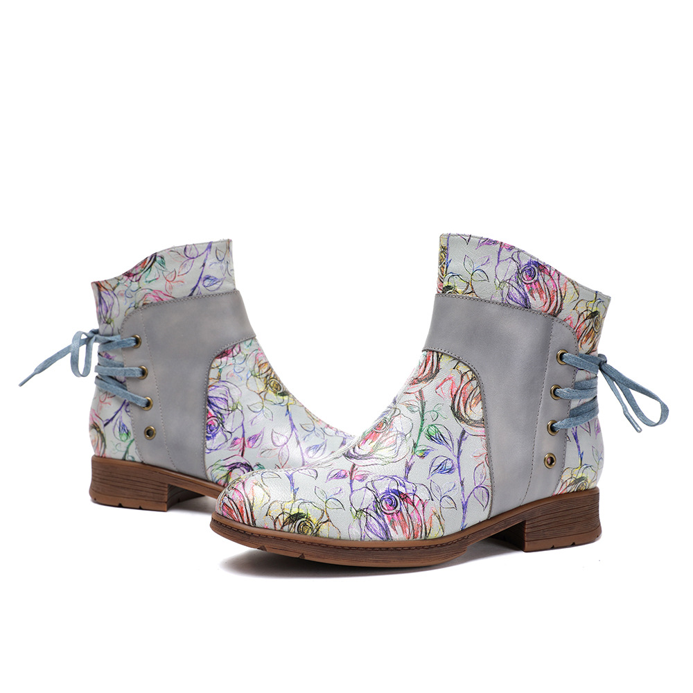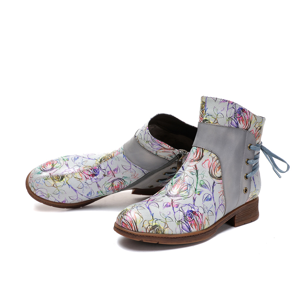 Socofy Vicconfy Retro Leather Blossom Casual Comfort Ankle Boots