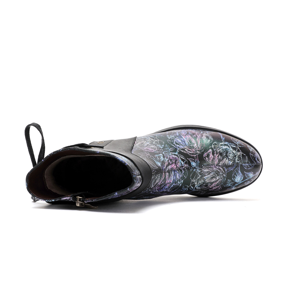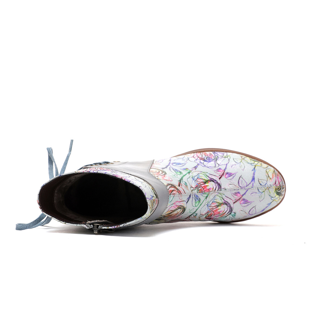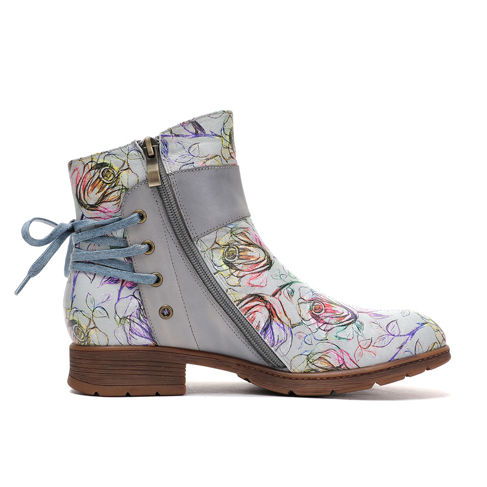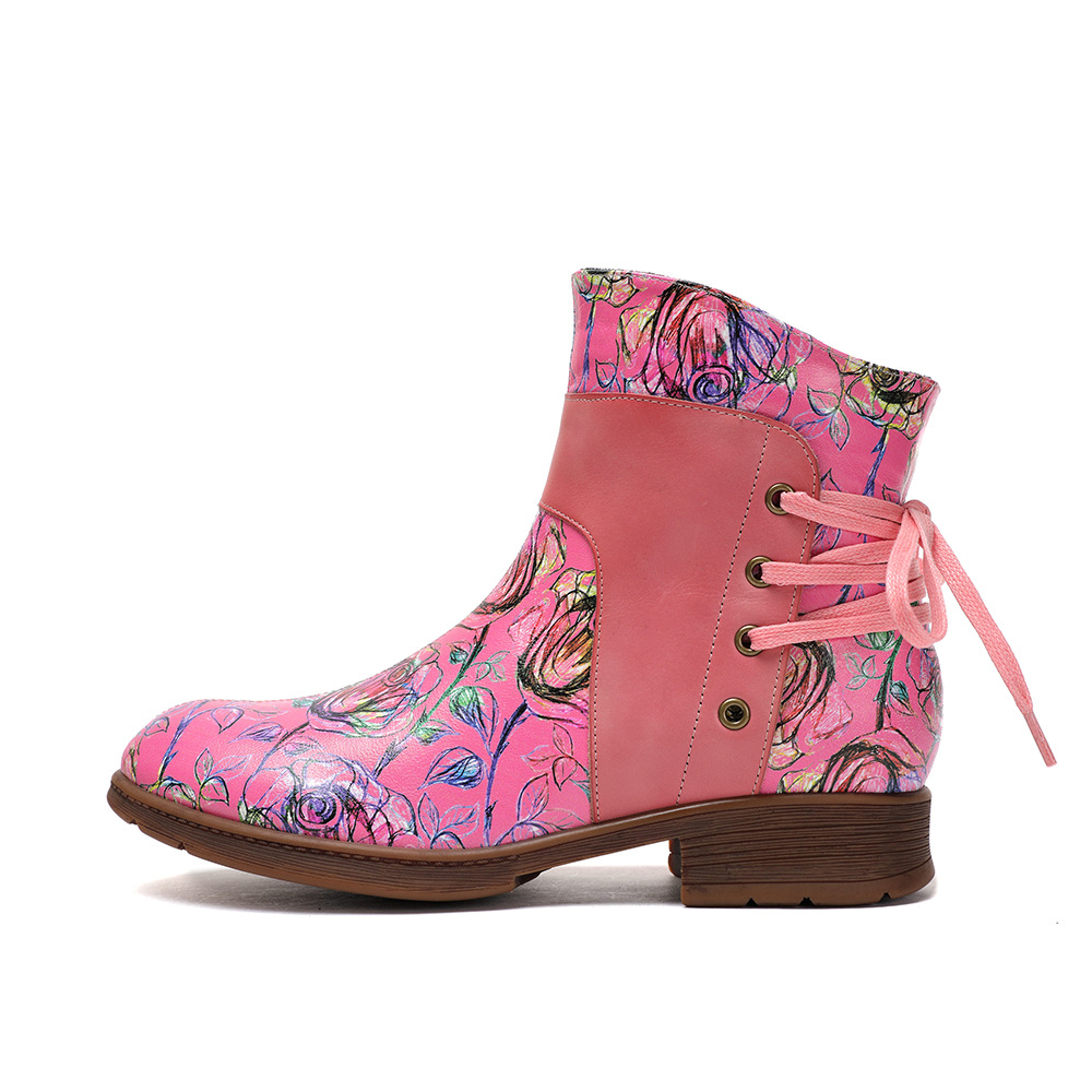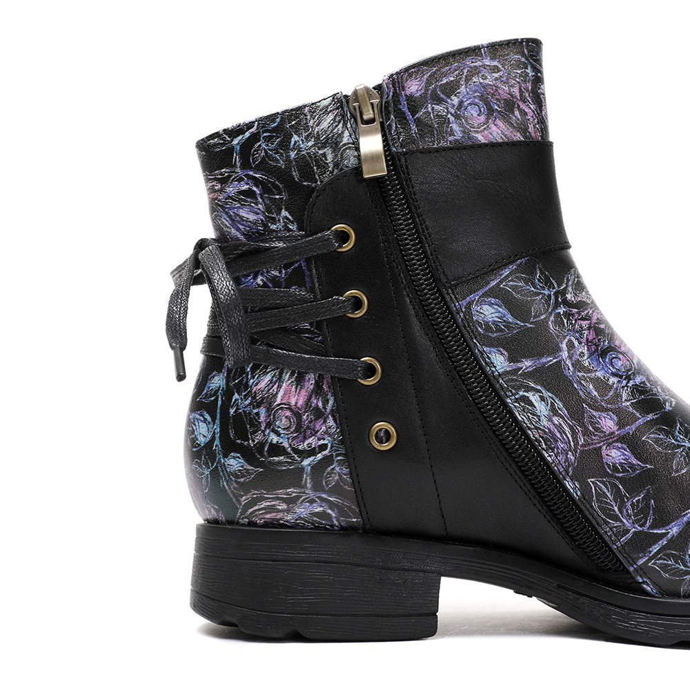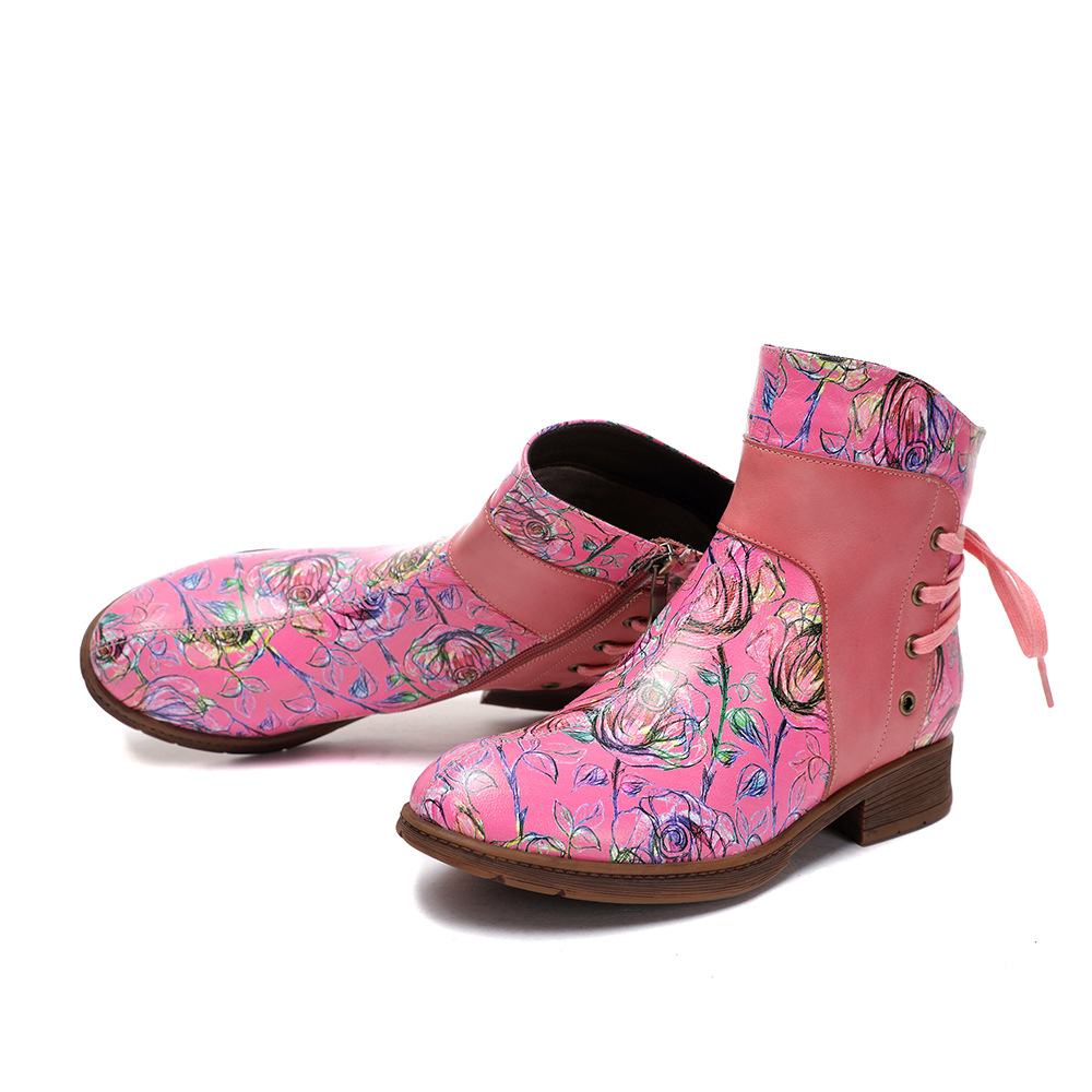 Socofy Vicconfy Retro Leather Blossom Casual Comfort Ankle Boots