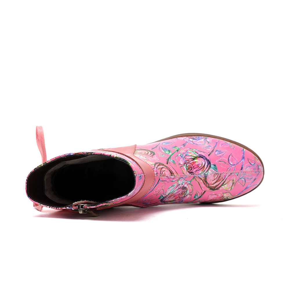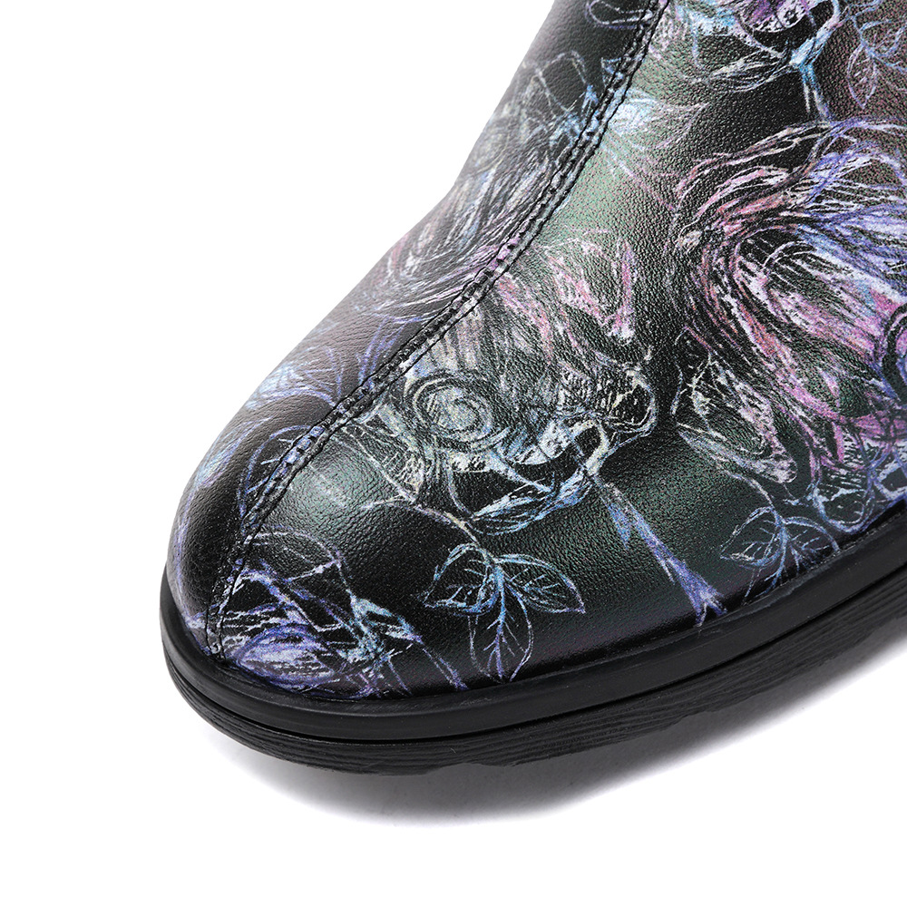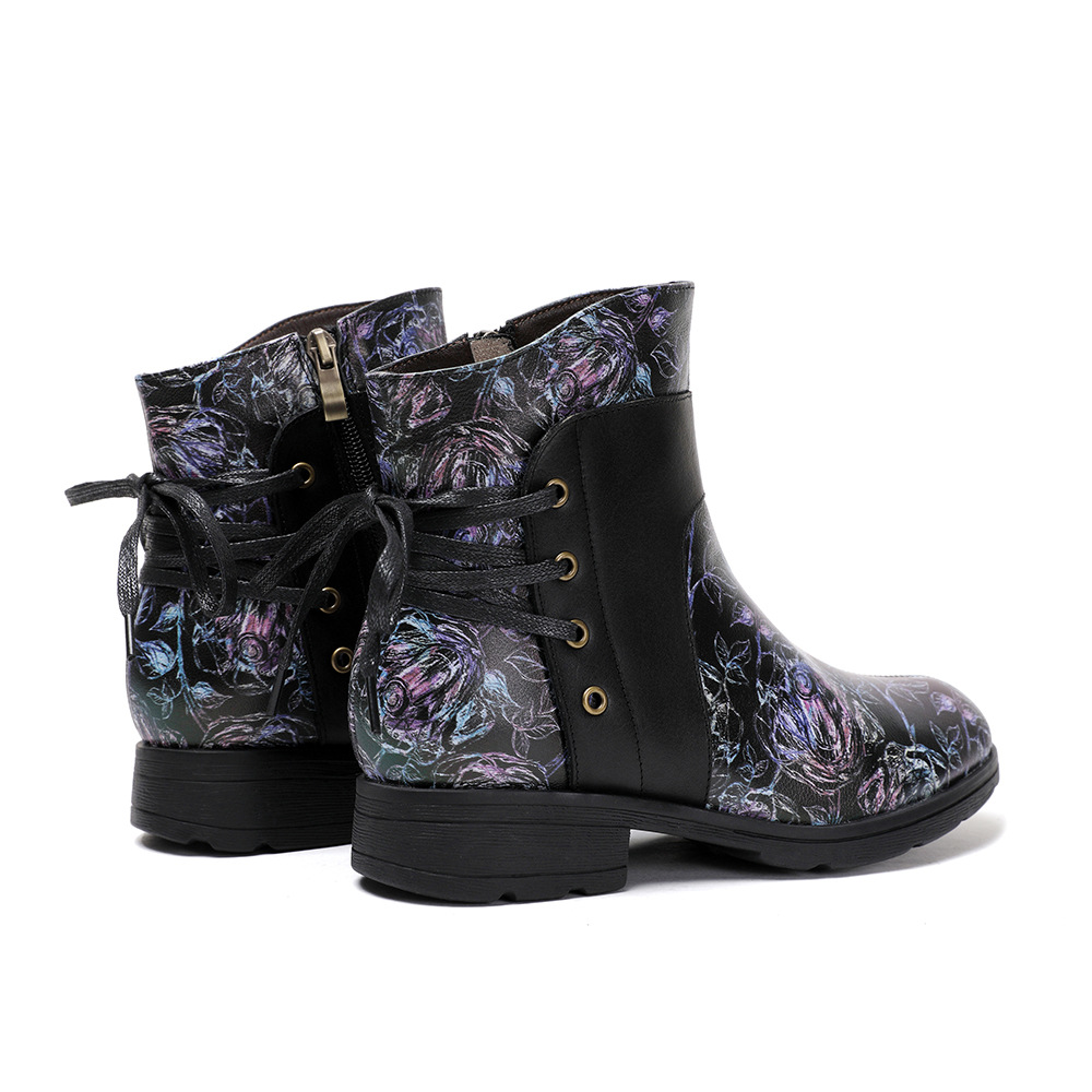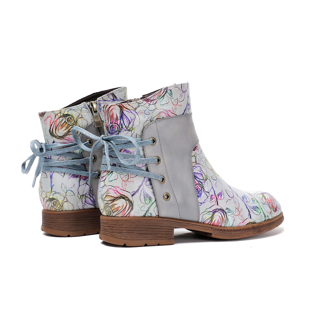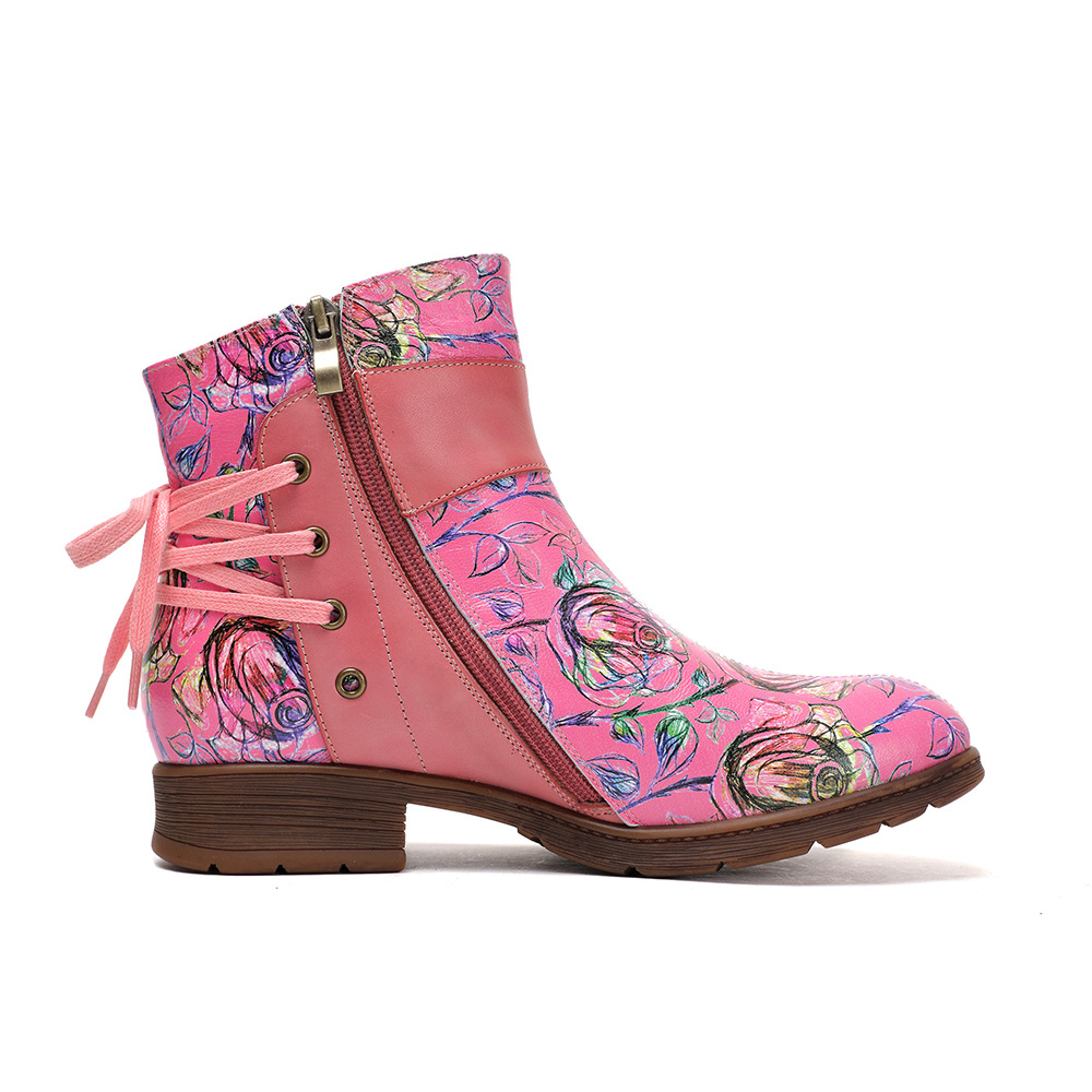 Socofy Vicconfy Retro Leather Blossom Casual Comfort Ankle Boots