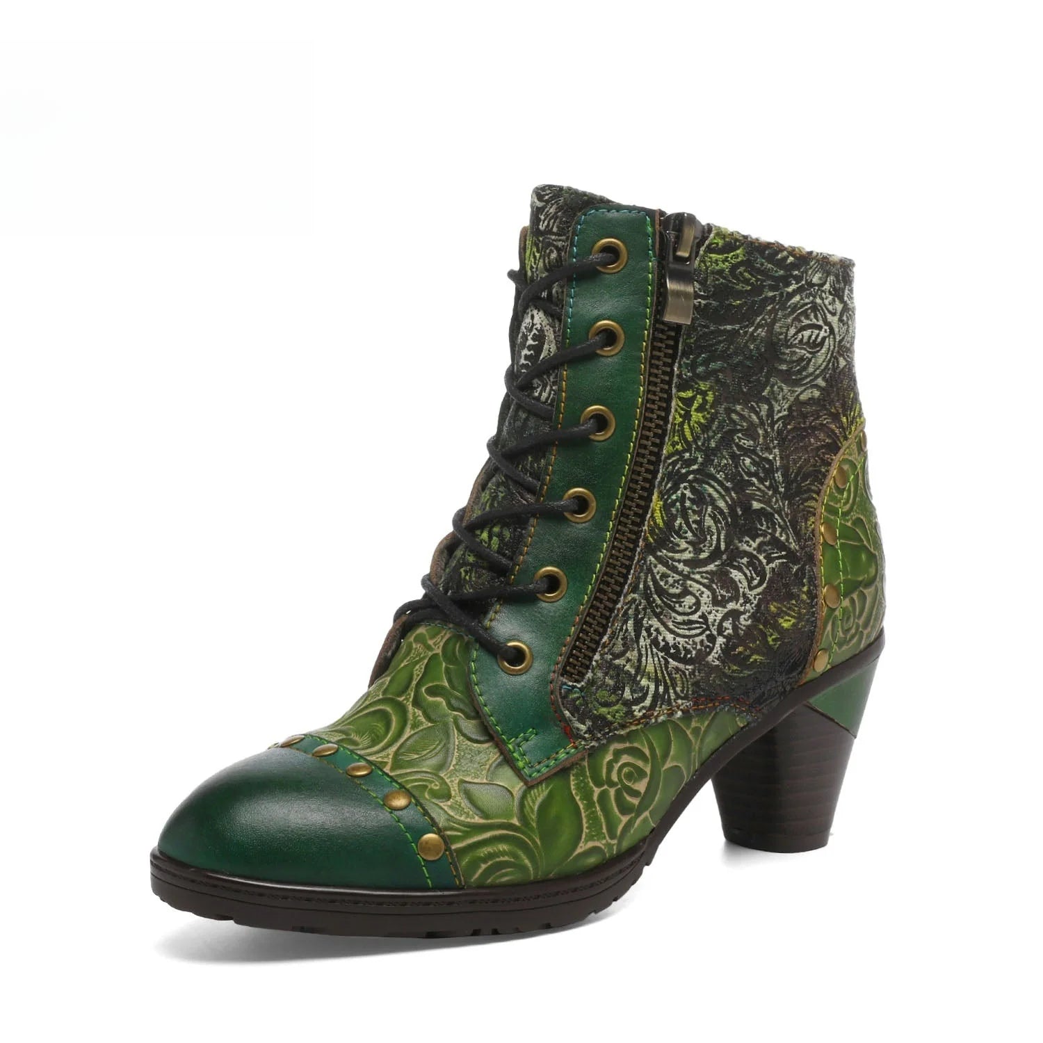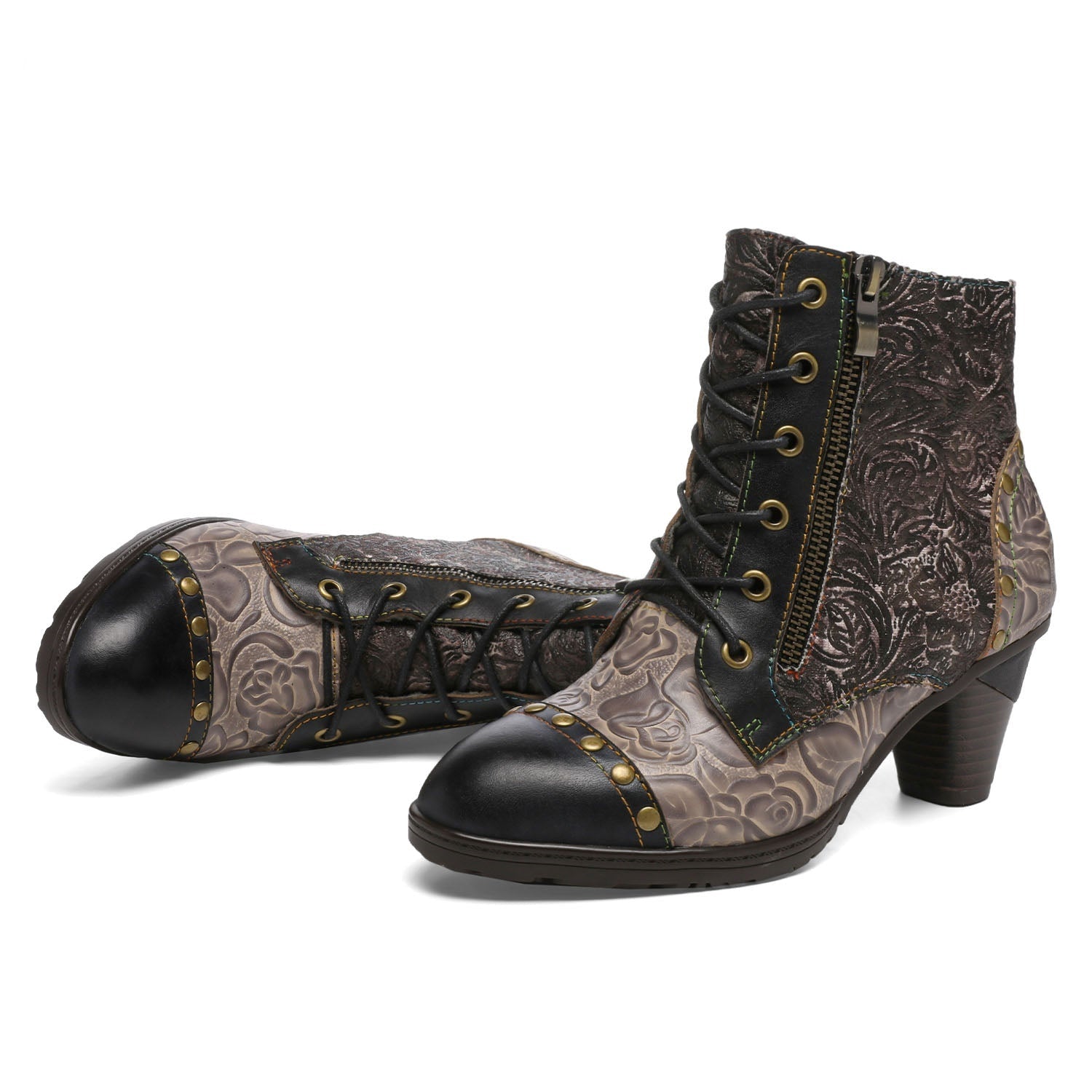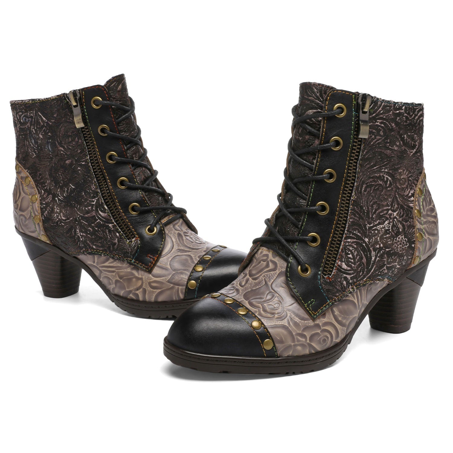Socofy Vicconfy Retro Handmade Leather Patchwork Ankle Boots