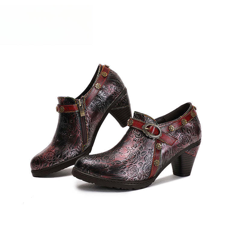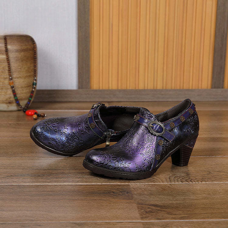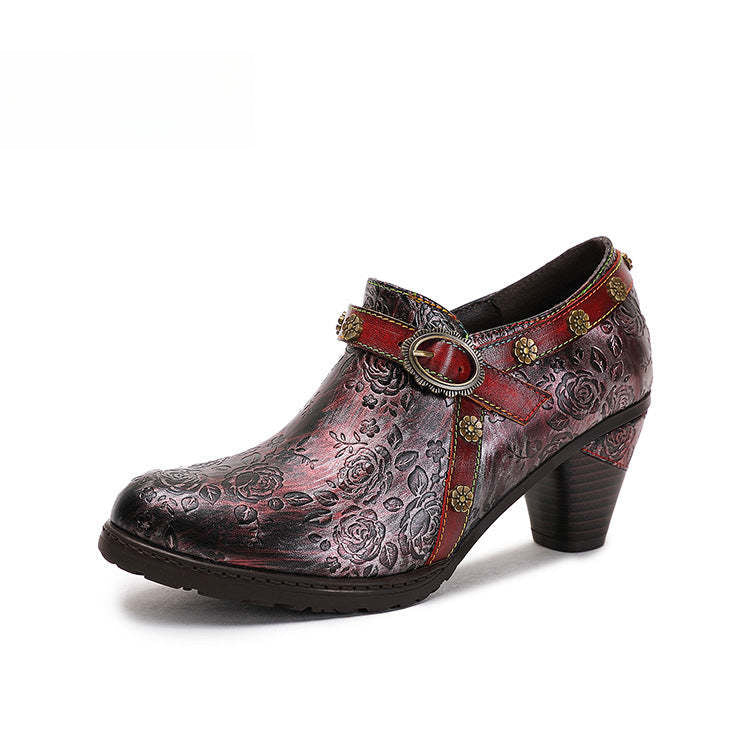 Socofy Ethnic style thick heel retro shoes pumps 750